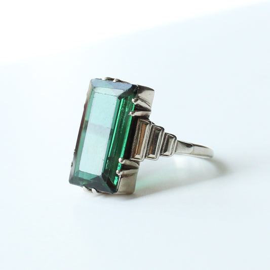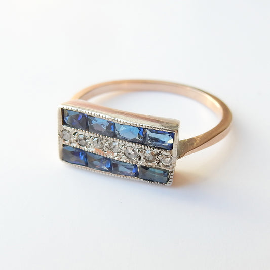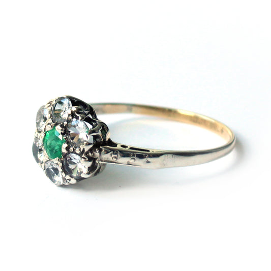 9ct Gold Emerald & Diamond Panel Ring