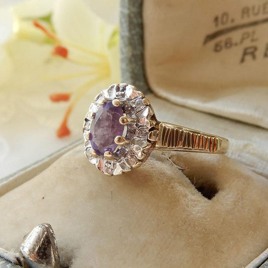 9ct Gold Amethyst & Diamond Ring