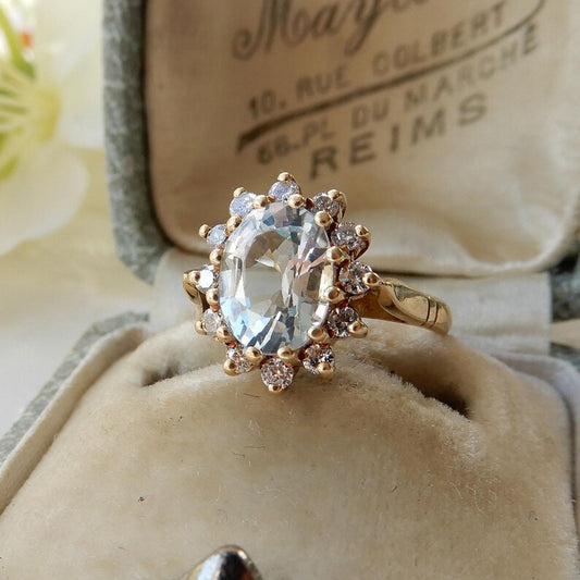 18ct Gold Aqua Diamond Halo Ring