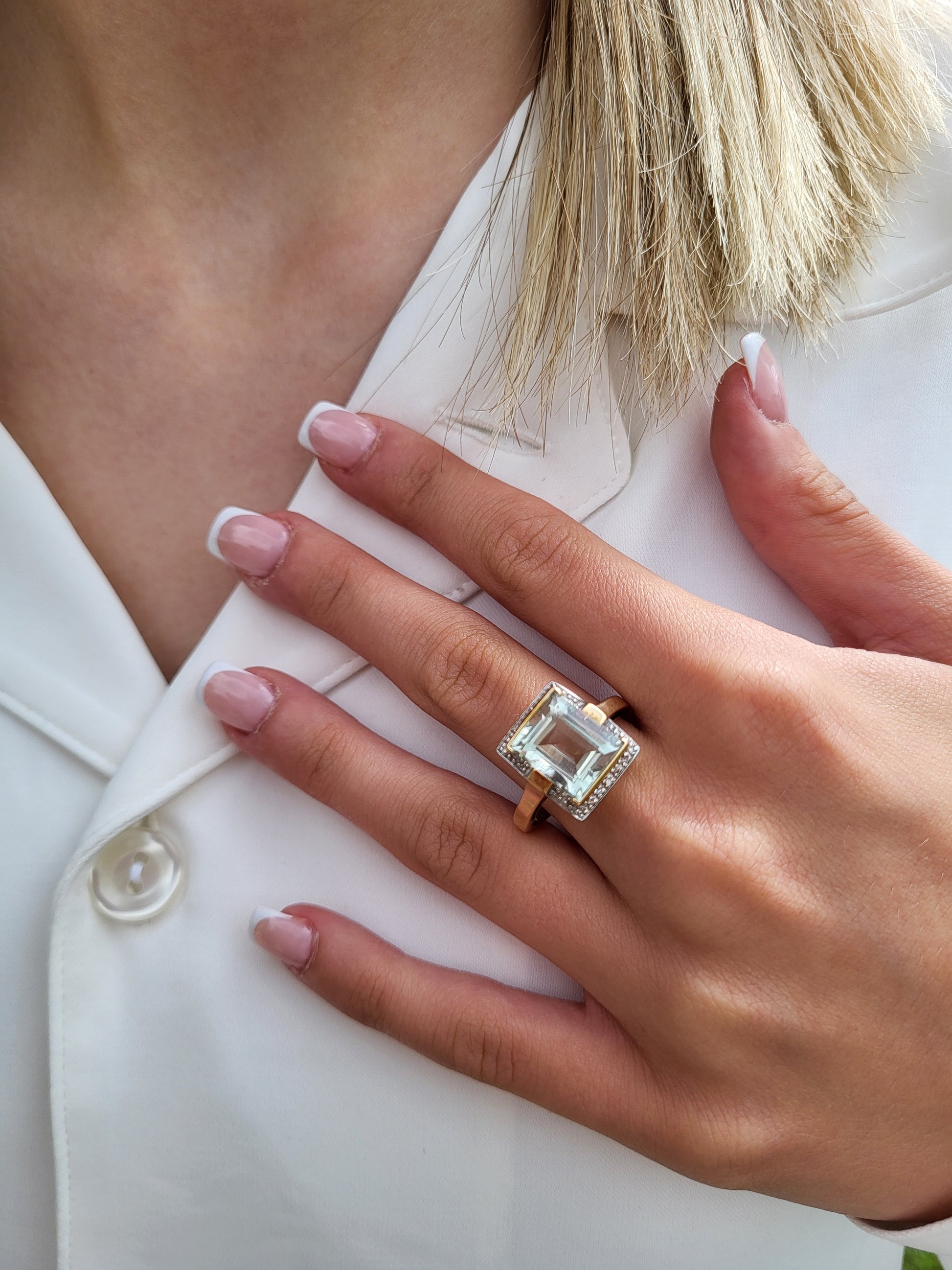 A Fresh and luminous rectangular-cut pistachio green amethyst ring, with a soft minty hue that feels cool, calming, and effortlessly chic.