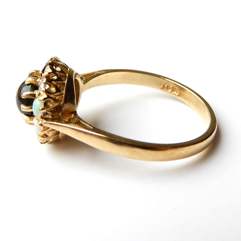 Antique 18ct Gold Multi-Gem Cluster Ring - Bloodstone Diamond Opal & Garnet