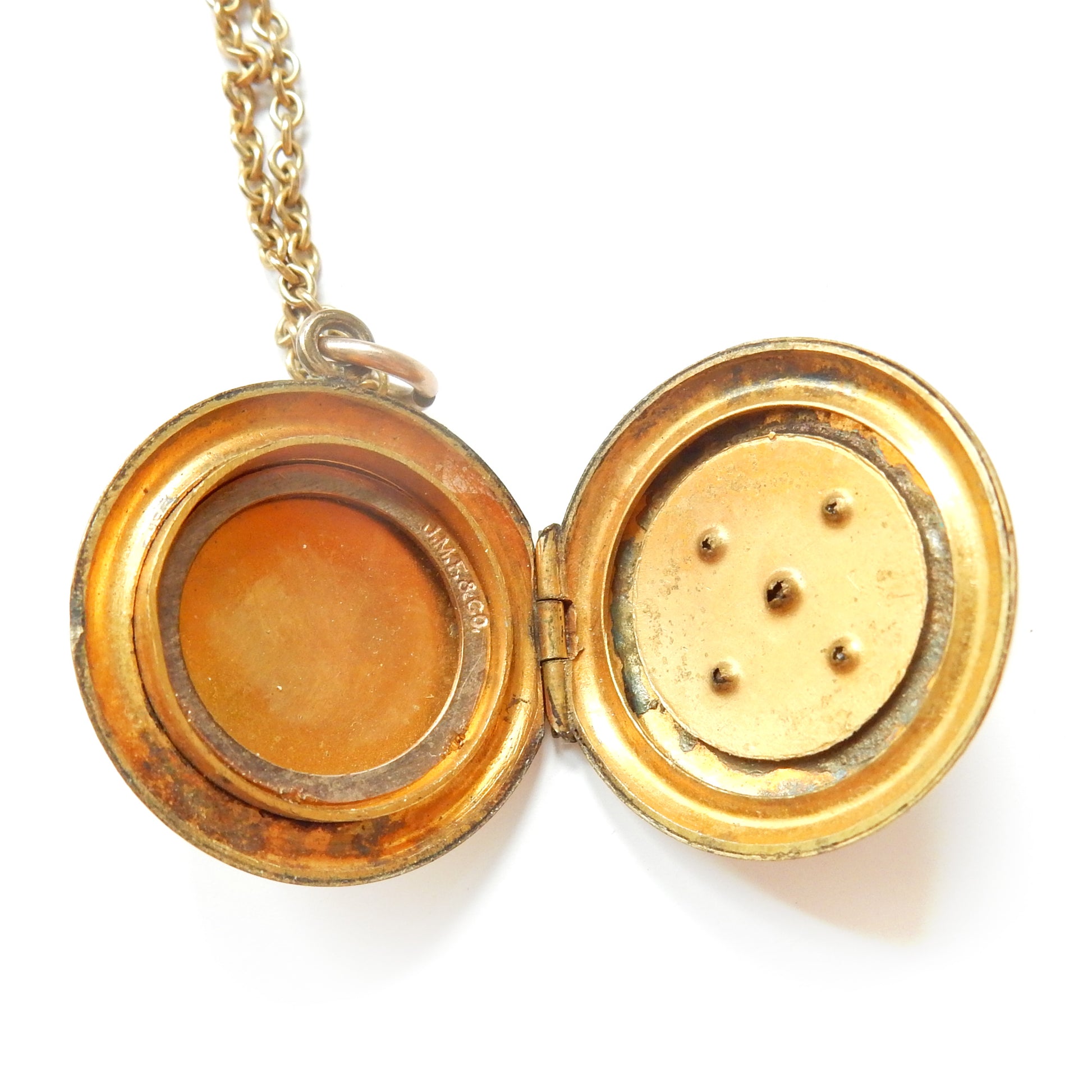 - HALLMARKS - "JMF & Co" to inside of locket rim (J.M. Fisher Company out of Attleboro, MA was founded in 1879)