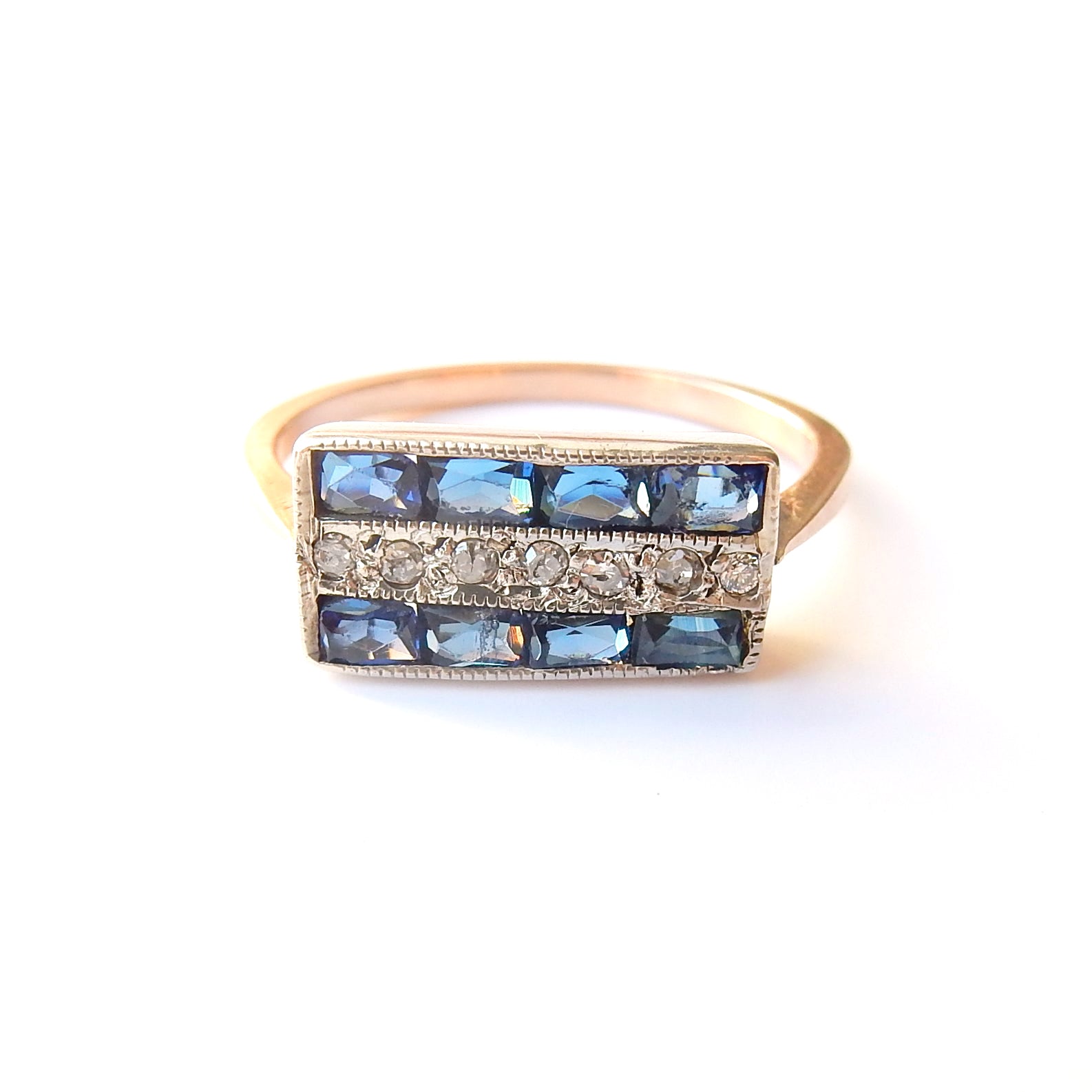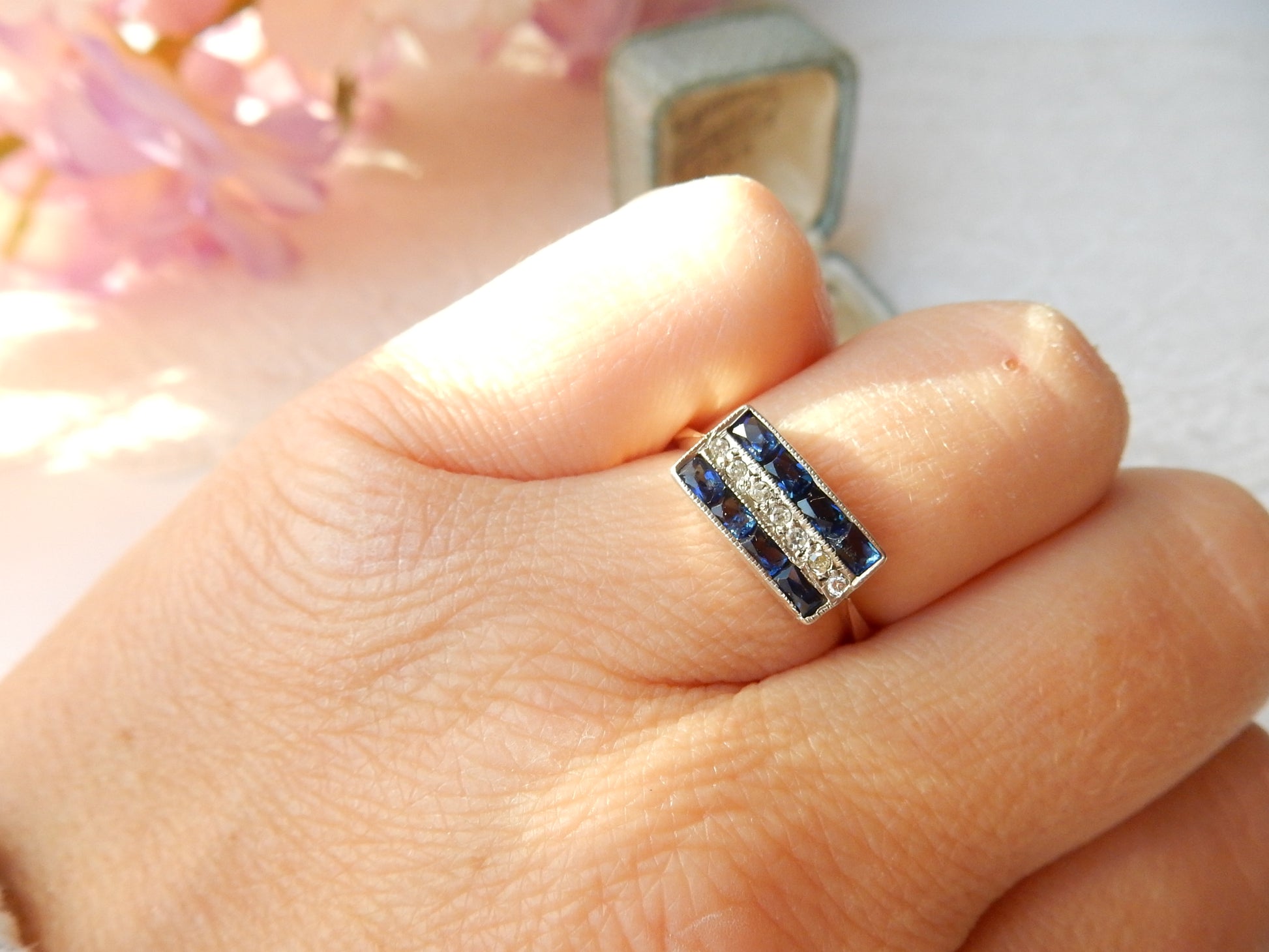 Art Deco Sapphire & Diamond Ring US Size 6 ¾ UK O