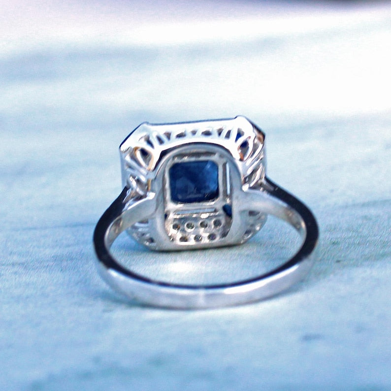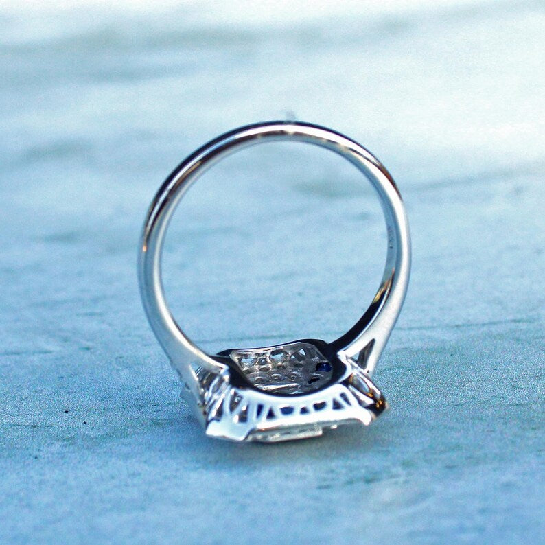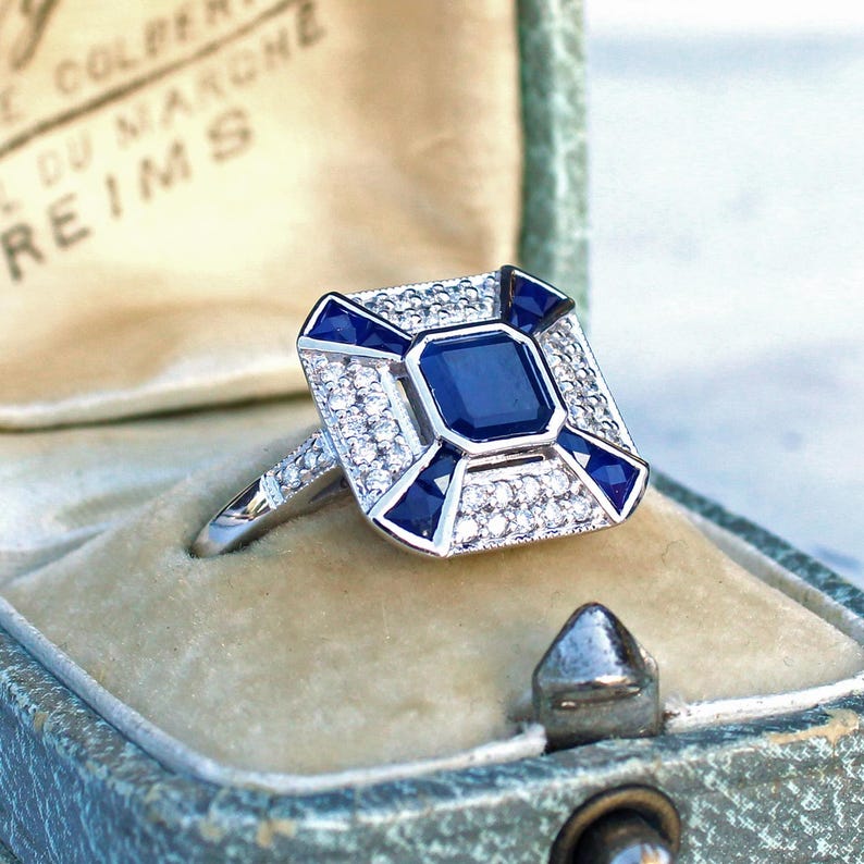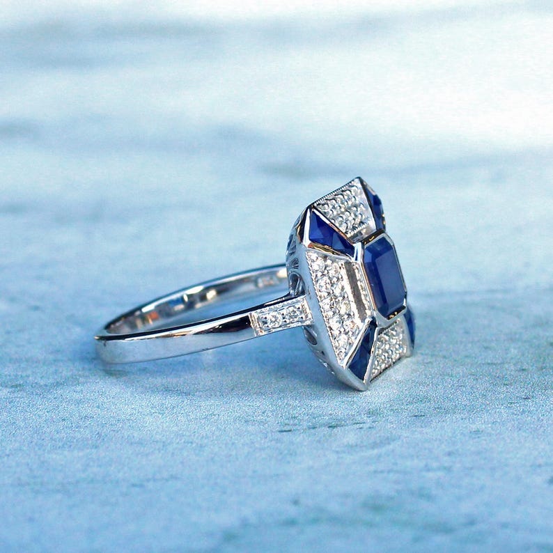 Art Deco style 9ct White Gold Sapphire & Diamond Ring