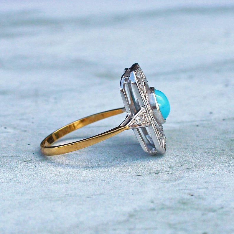 Art Deco style Solid Silver Turquoise Cabochon Panel Ring