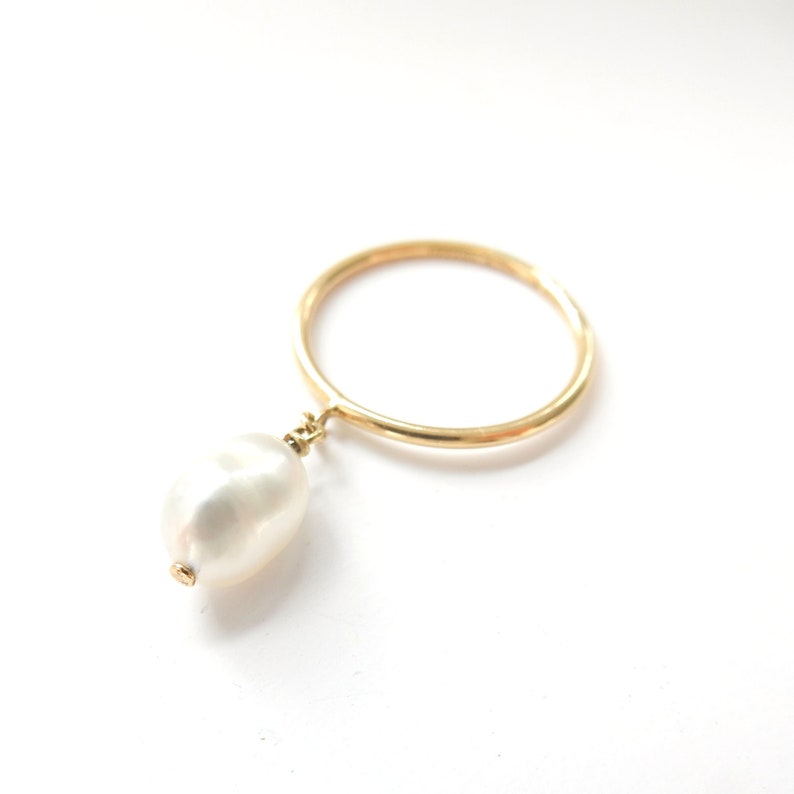 A breath taking 18ct gold Tiffany & Co ring. This amazing dainty gold ring features a stunning Baroque pearl dangle. This is a stunning ring, the delicate band would make this ring work very well as part of a ring stack or for somebody with smaller hands. The combination of the high carat gold and the beautiful creamy colored Pearl works so well together. This is a beautiful ring waiting to be loved and worn. A beautiful vintage Tiffany & Co ring!