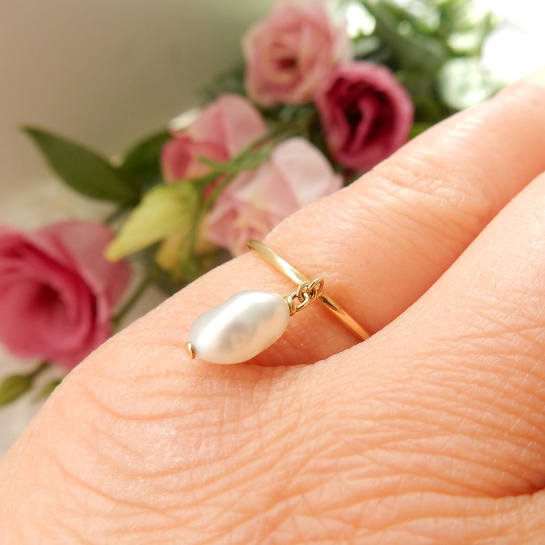 Dainty Vintage 18ct Gold Tiffany & Co Baroque Pearl Ring US Size 5.5 UK M