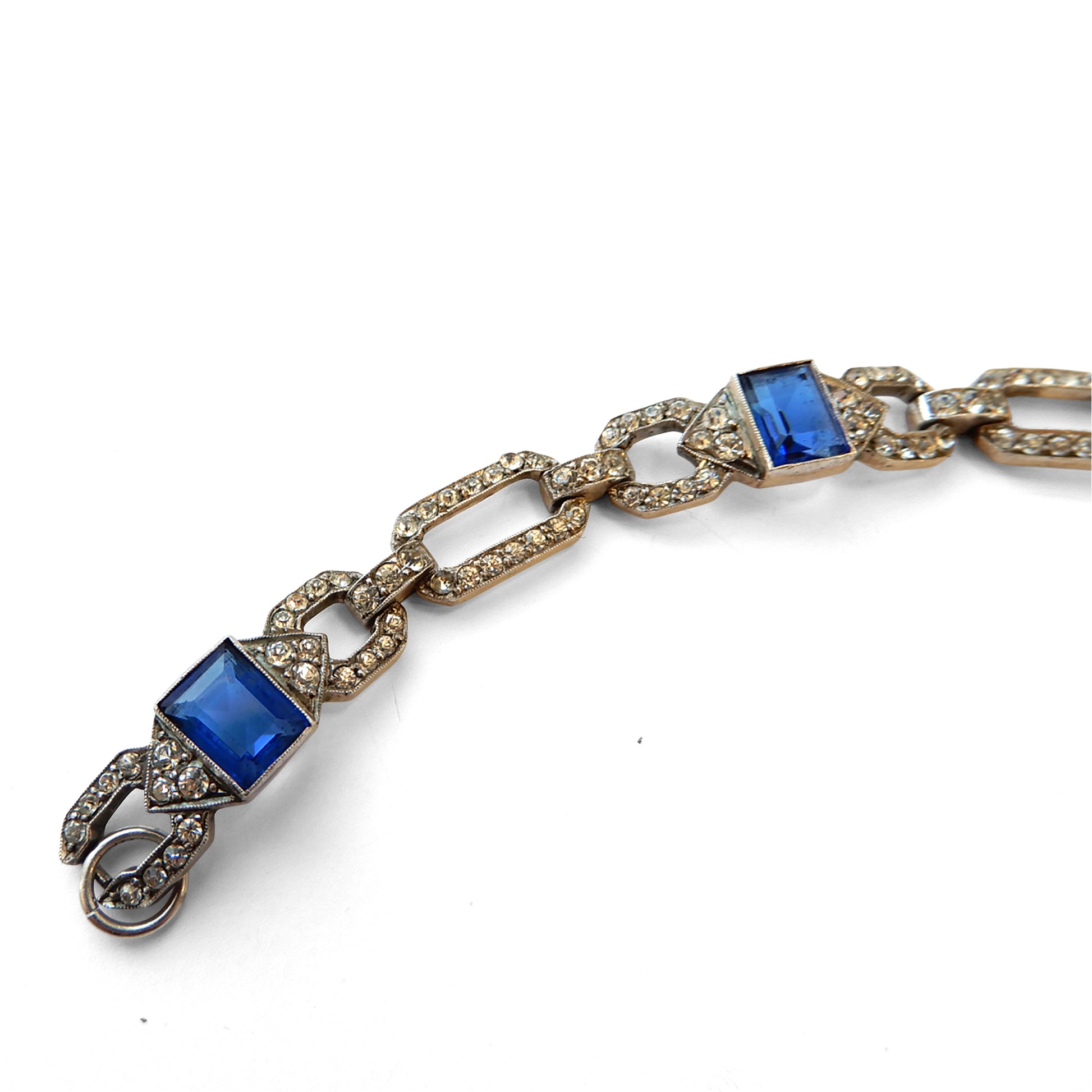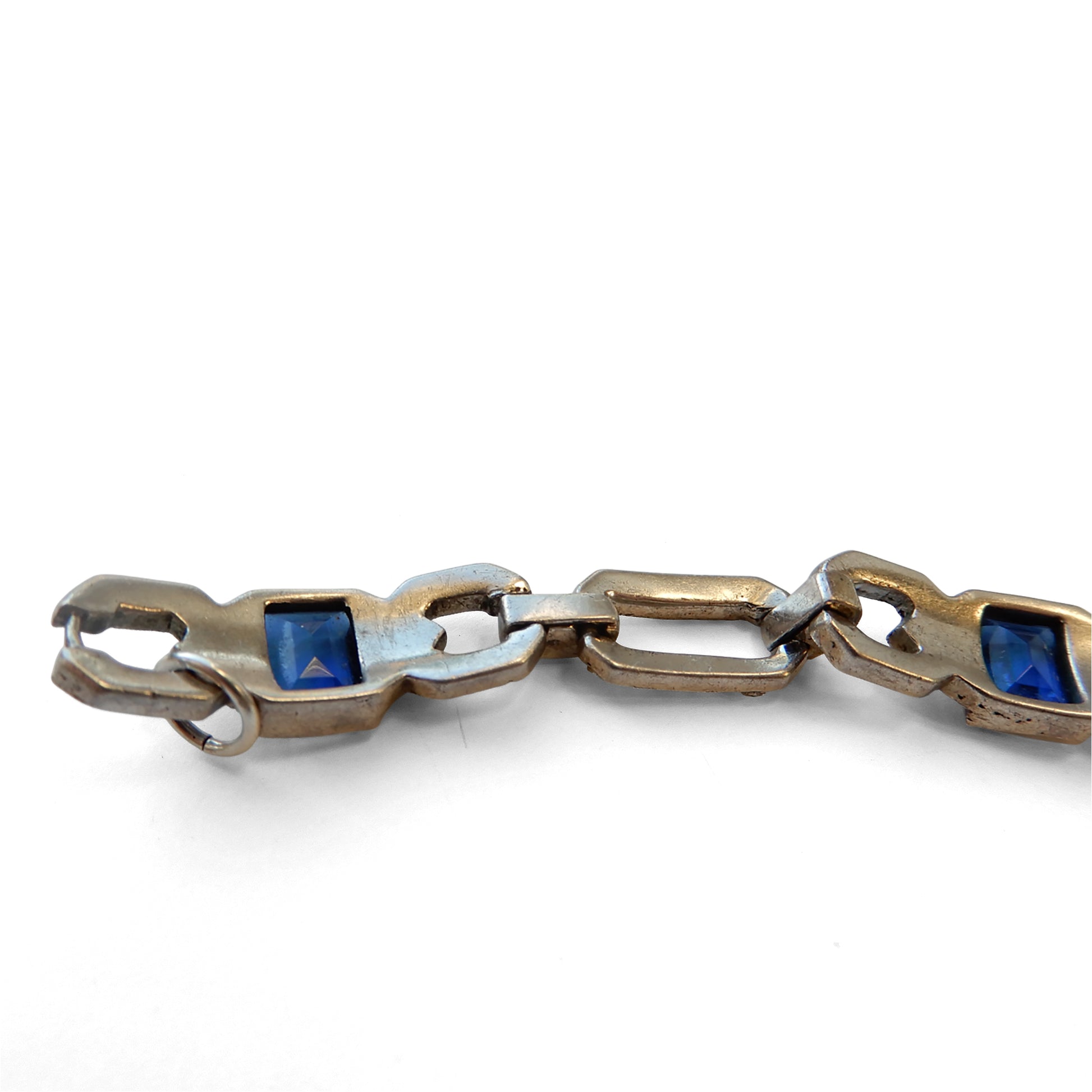 Vintage Sterling Silver Art Deco Style Sapphire Paste Bracelet