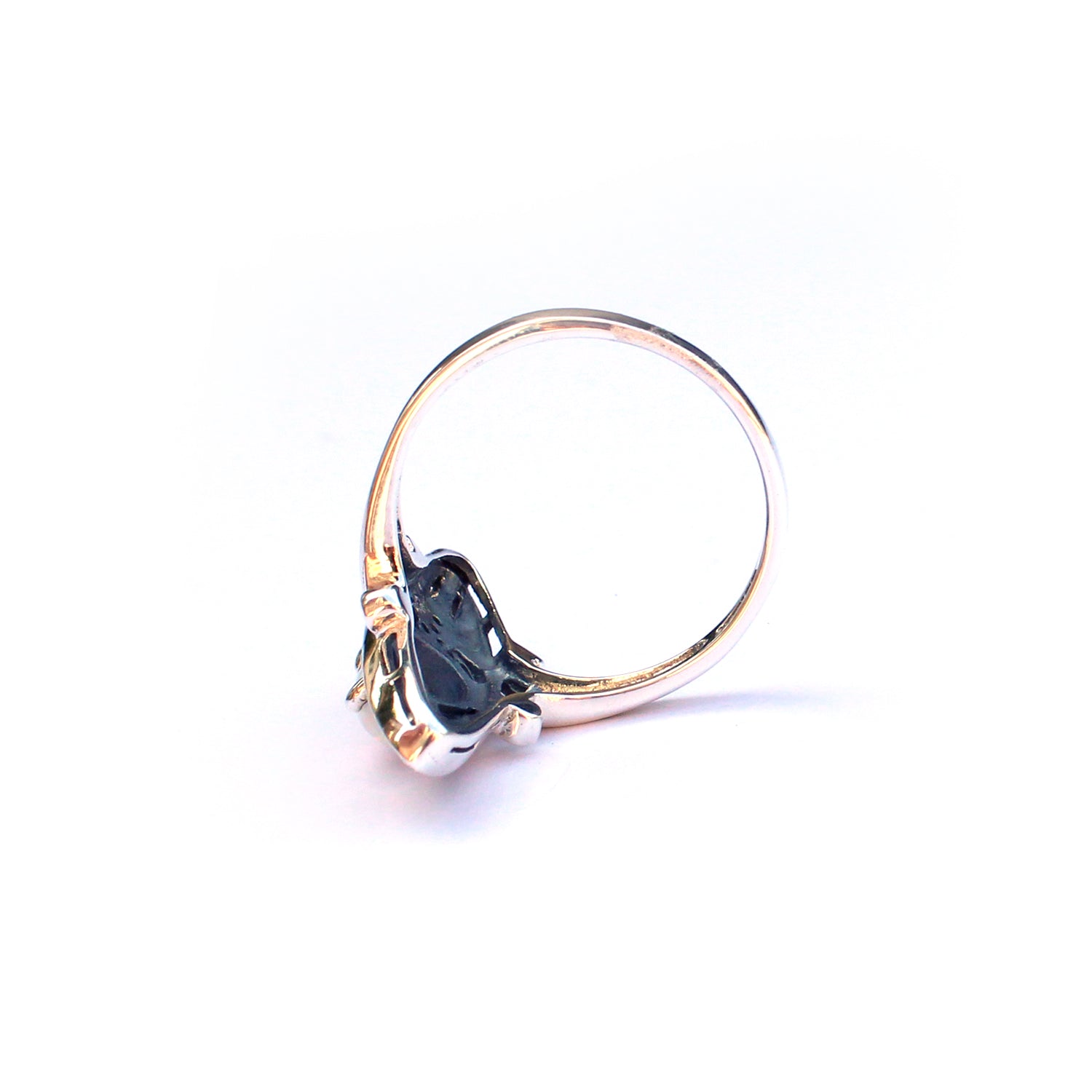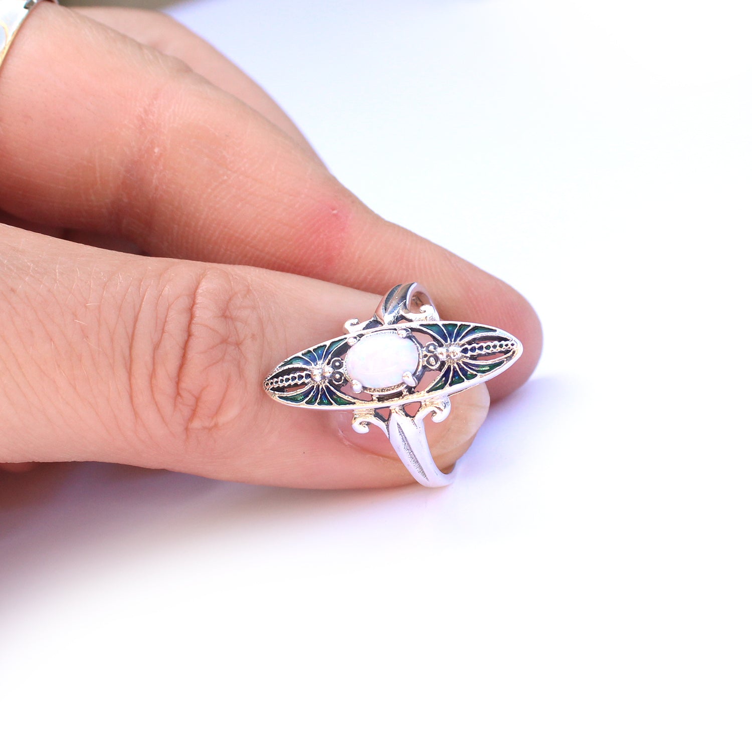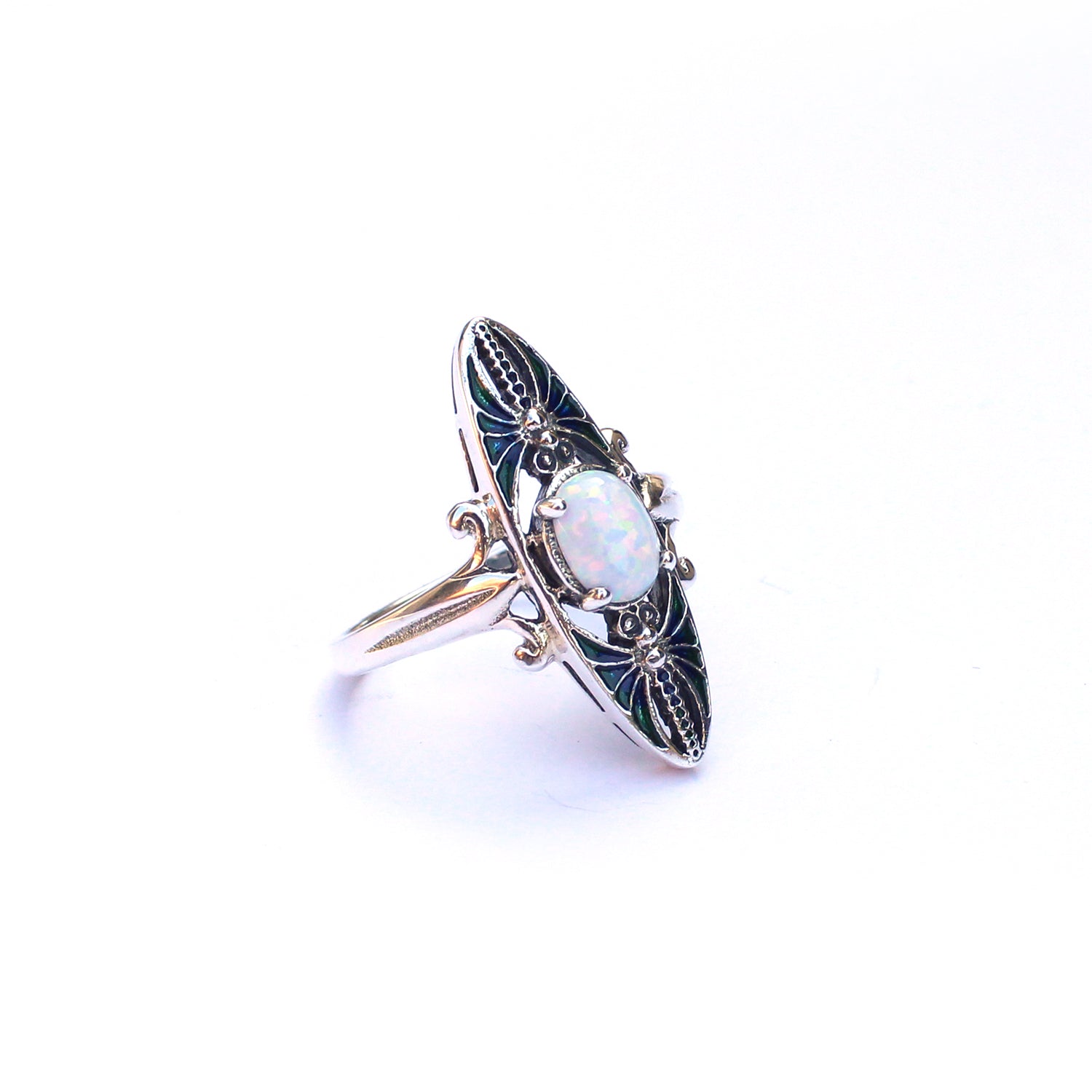 Sterling Silver Opal & Blue Enamel Navette Ring