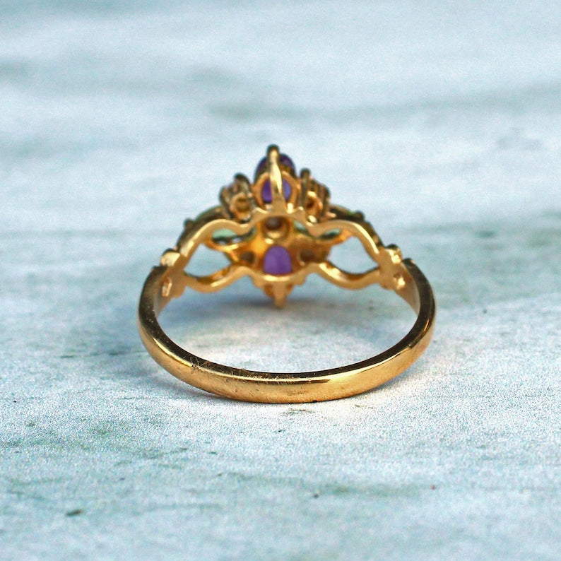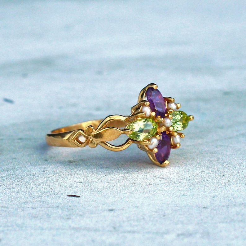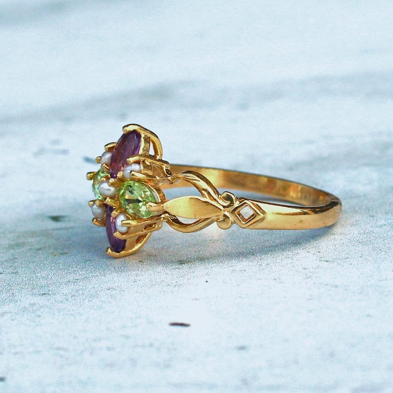 Sterling Silver Peridot Amethyst Pearl Quatrefoil Ring