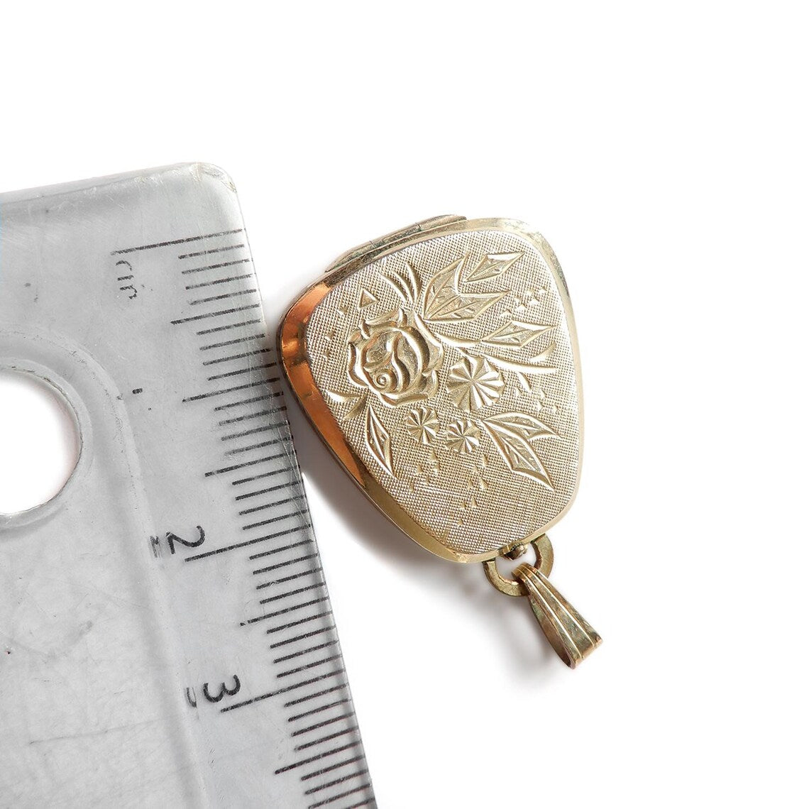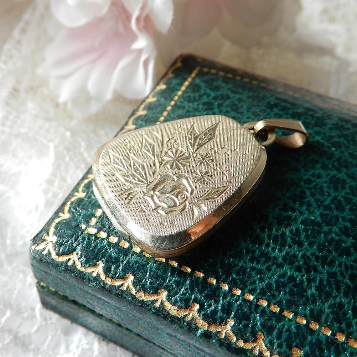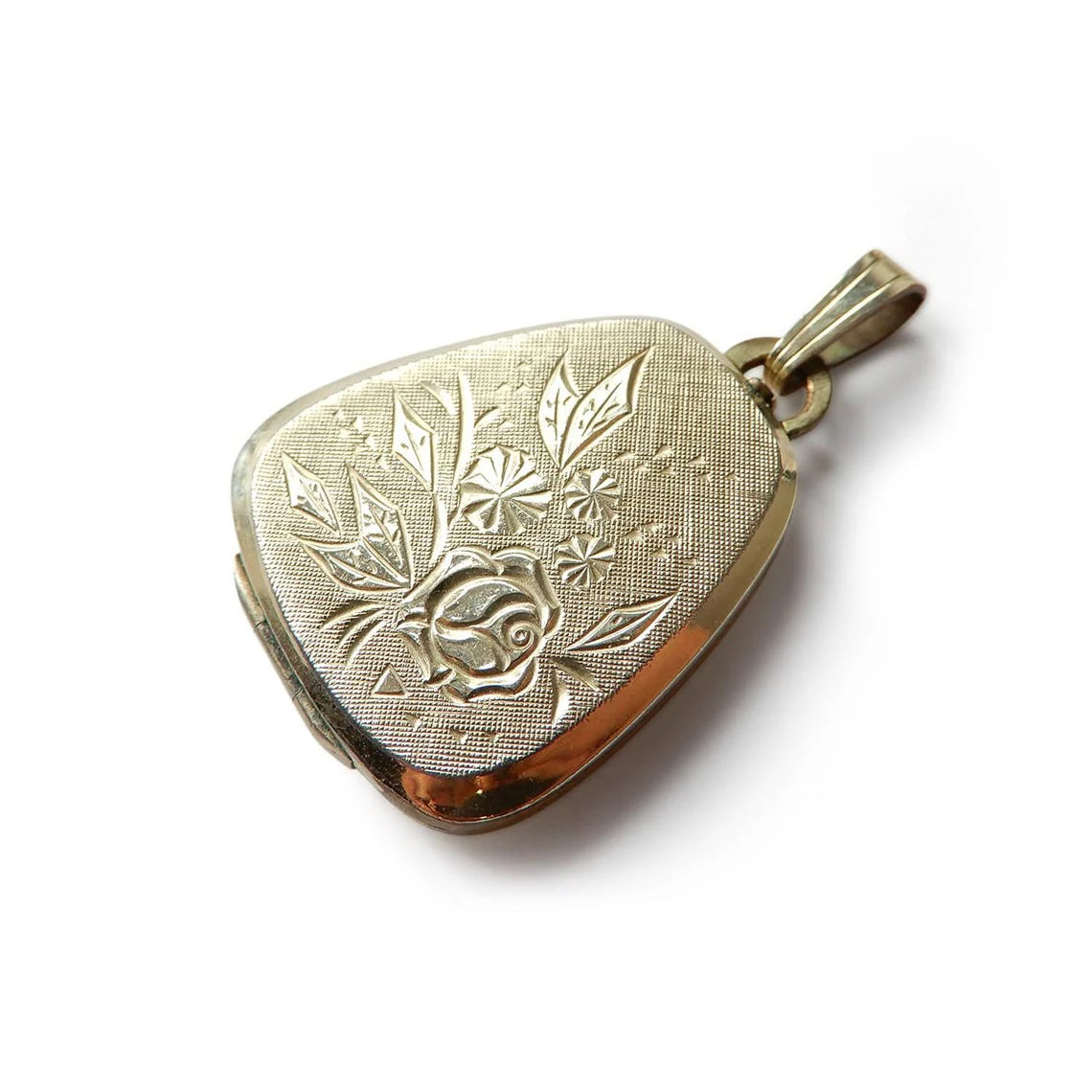 A beautiful vintage rolled gold locket. This charming vintage locket has an eye catching flower motif to the front. This locket would be perfect for storing a photograph of a loved one inside. A simply breath taking vintage rolled gold locket!