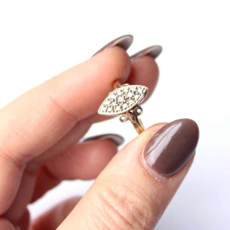 Vintage 9ct Gold Diamond Navette Ring