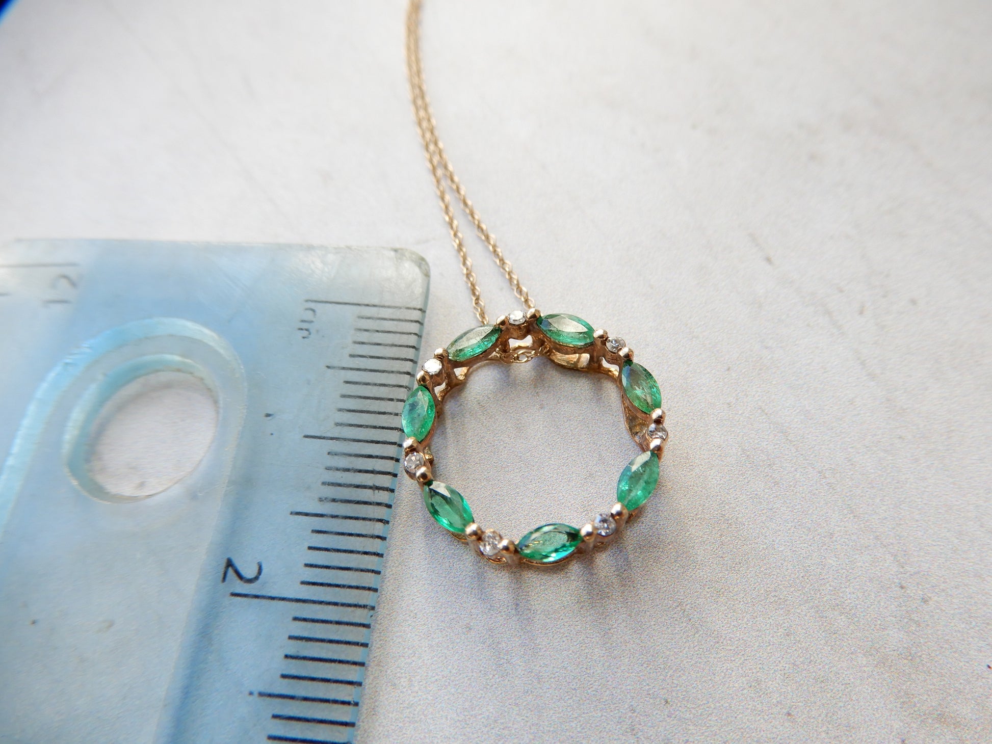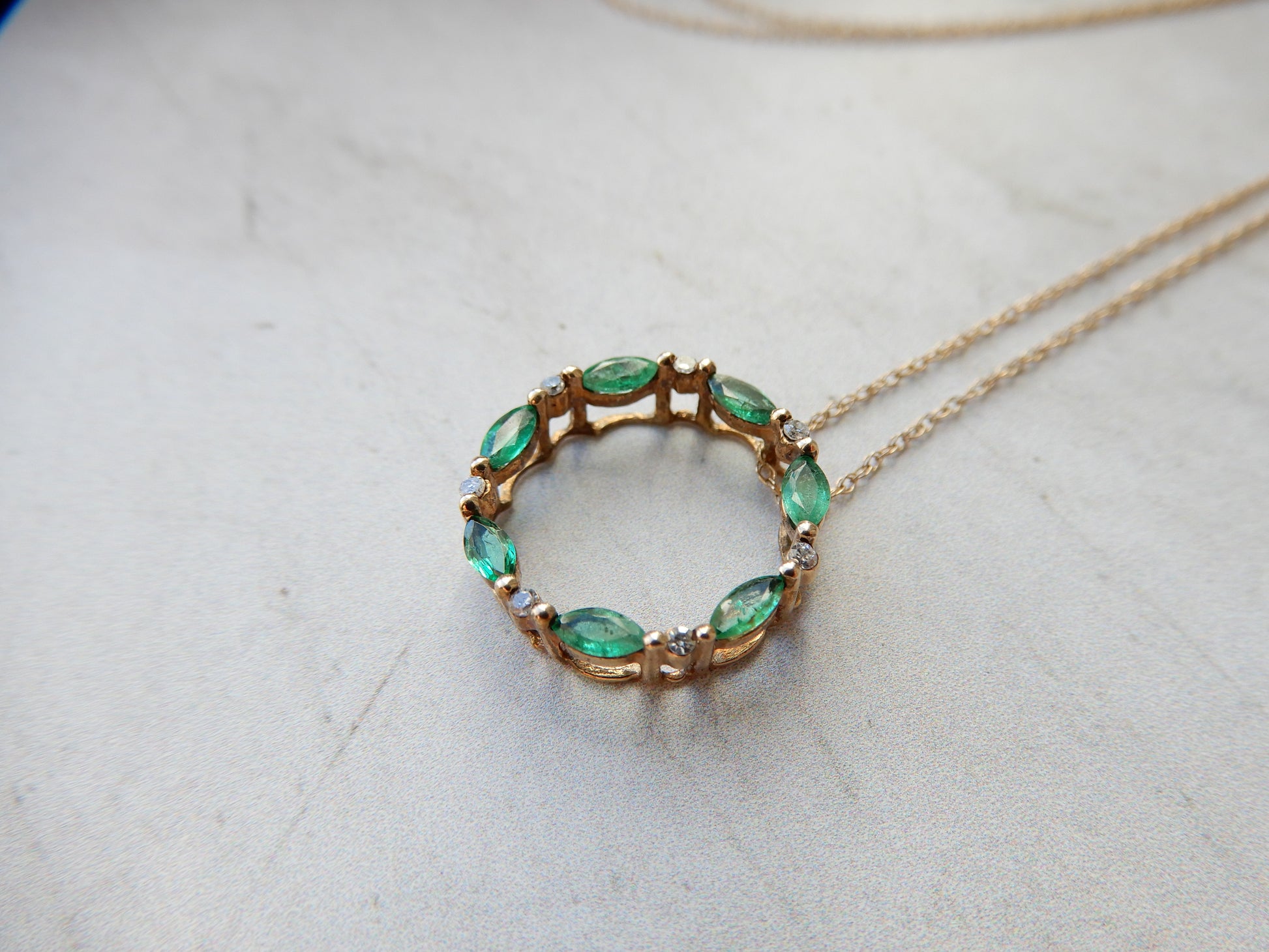 Vintage 9ct Gold Emerald Eternity Circle Necklace