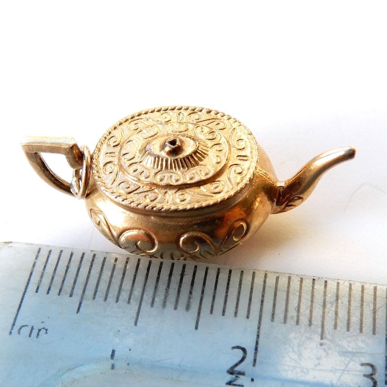 Delightfully whimsical, this vintage 9ct gold teapot charm is a miniature treasure weighing 1.7 grams.