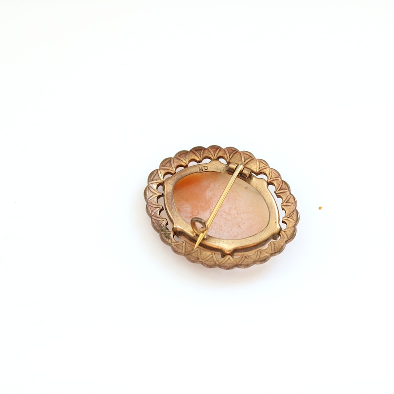 Vintage Rolled Gold Carved Shell Cameo Brooch